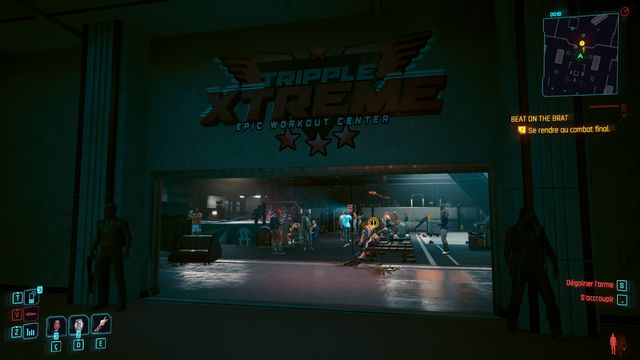 Prenez l'ascenseur et rejoignez le club. Sécurisez la zone puis parlez au chef des "Animals" (photo ci-dessous à gauche). Allez à l'étage (photo ci-dessous à droite).