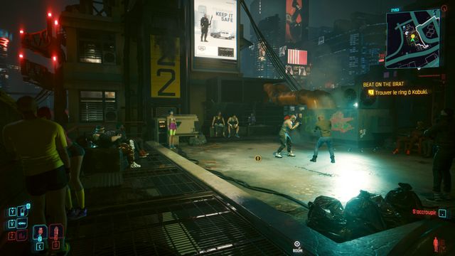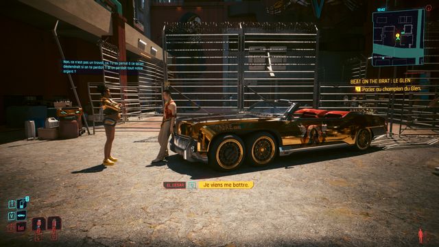 Le ring est au milieu des immeubles (photo ci-dessous à gauche). Parlez au mec à côté de la voiture (photo ci-dessous à droite). Voiture que vous pouvez obtenir en gagnant le combat.