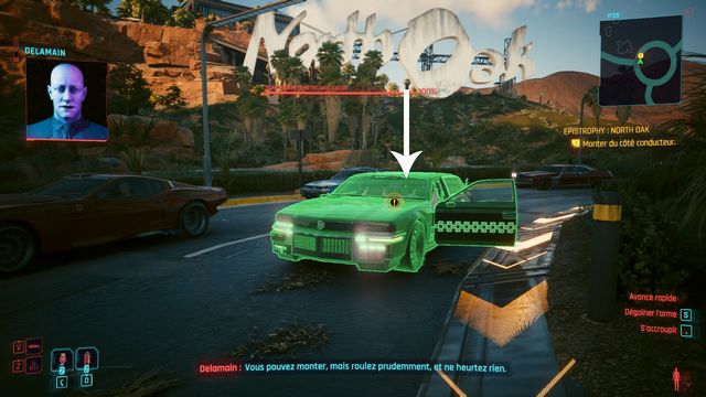 Restez à proximité de la voiture, cette dernière va s'arrêter au bout d'un petit moment et vous pourrez monter à l'intérieur. Ramenez le véhicule au QG de Delamain (photo ci-dessous). Ne roulez pas trop vite sinon la voiture s'arrête.