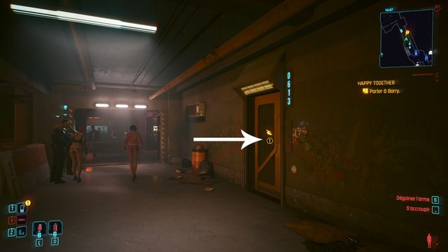 Parlez aux policiers. Ils vous demandent de parler à Barry. Sa porte est juste derrière (photo ci-dessous à gauche). Frappez à la porte de Barry. Ce dernier ne répond pas. Attendez quelques heures et revenez frappez à la porte de Barry. Vous