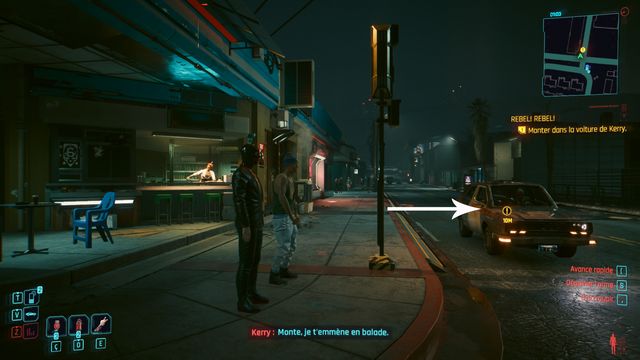 grenade à partir de l'inventaire du personnage. Les flics arrivent, montez dans la voiture de Kerry côté chauffeur et semez les flics. Une fois les flics semés, ramenez-le au point suivant (photos ci-dessous).