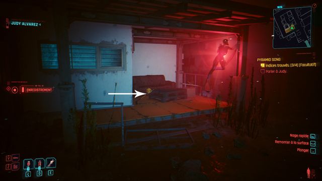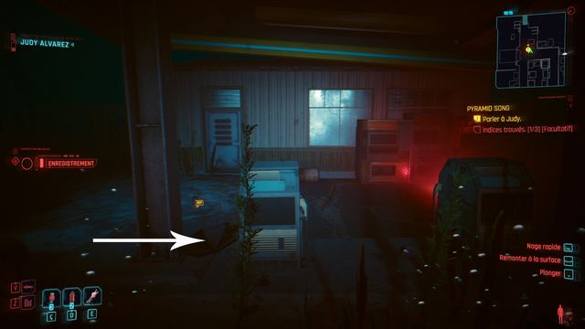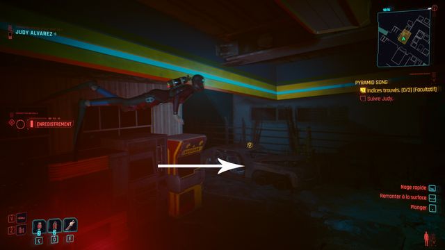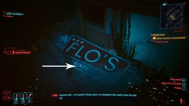 Approchez-vous de Judy et mettez l'enregistreur. Sautez dans l'eau suivez Judy sous l'eau. Accrochez-vous au poteau quand Judy vous le demande. Vous découvrez une ville sous l'eau. Utilisez le scanner sur l'enseigne du resto pour le 1er