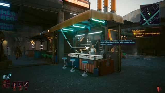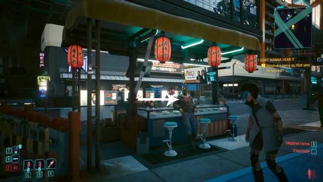 Allez au marché puis prenez un plat auprès du vendeur suivant qui est juste à l'entrée (photo ci-dessous). La quête se déclenche. Parlez aux voyous à proximité du stand (photo ci-dessous à droite).