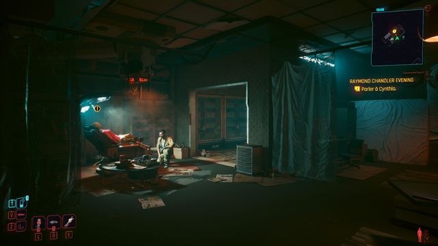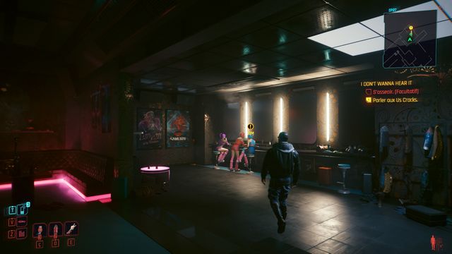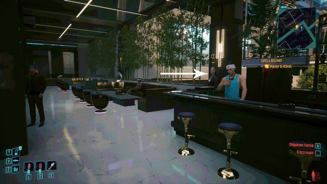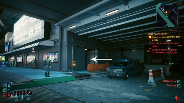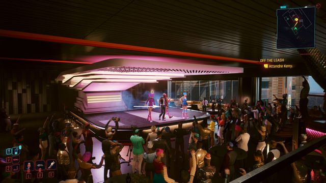 Dites au mec qui bloque l'accès à l'ascenseur que vous êtes attendu par Kerry Eurodyne. Il vous laisse passer. Rejoignez "35 : Salon". Frayez-vous un chemin jusqu'à Kerry en bas (photo ci-dessous). Suivez Kerry et discutez avec lui