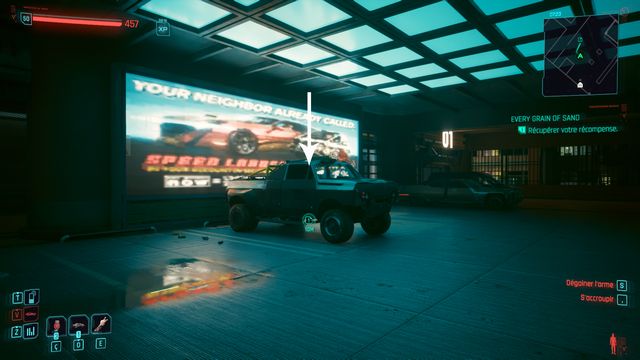 Retournez à votre appartement. Lorsque vous faites face à ce dernier, allez à gauche et prenez l'ascenseur au bout du couloir "03 : Garage". Vous récupérez un 4x4 en récompense (photo ci-dessous).
