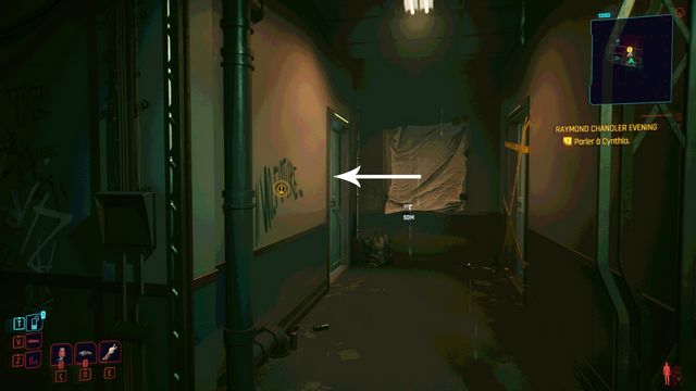 bâtiment où Cynthia est entrée. Allez au 1er étage et passez la porte suivante (photo ci-dessous à droite).