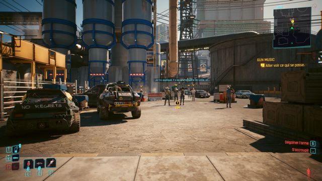 Parlez au mec qui fait le garde (photo ci-dessous à gauche). La quête se déclenche. Rejoignez les désosseurs (photo ci-dessous à droite).