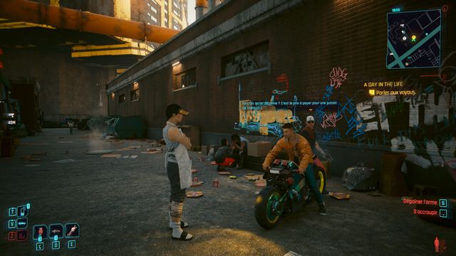 Approchez des mecs pour déclencher la quête (photo ci-dessous à gauche). Menacez-les pour qu'ils vous donnent la mallette. Les clodos prennent peur et s'en vont. Récupérez la mallette (photo ci-dessous à droite).