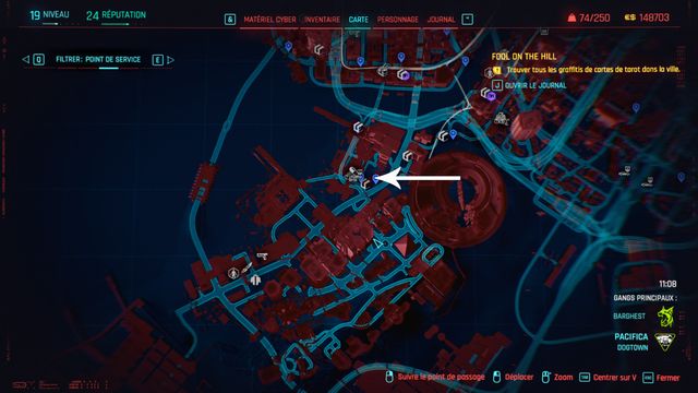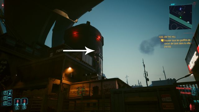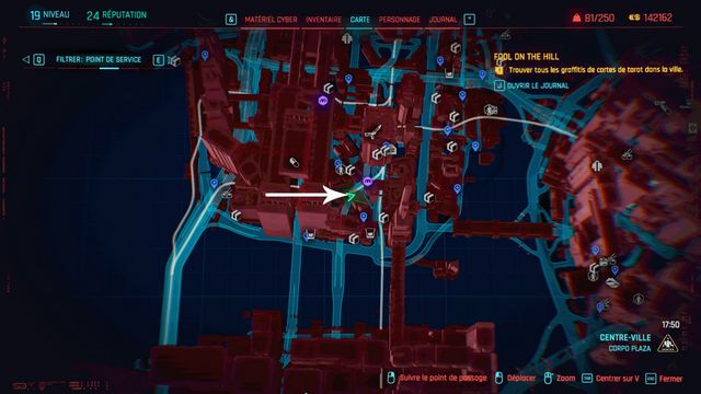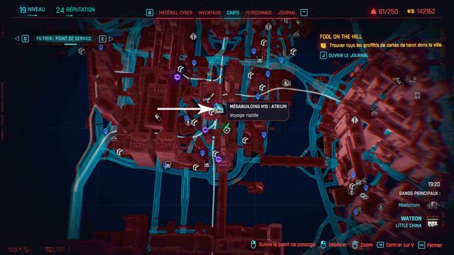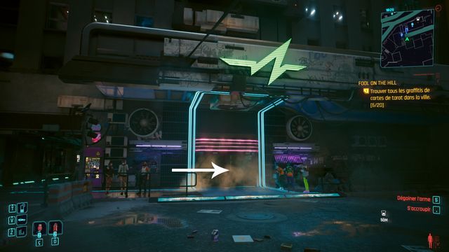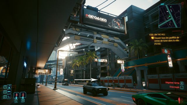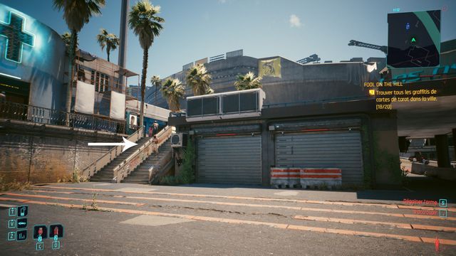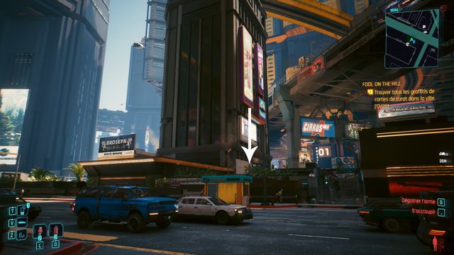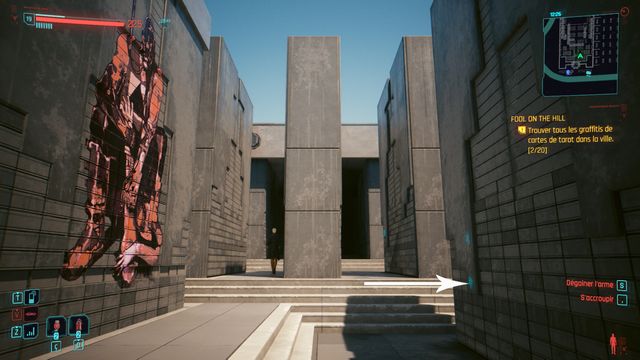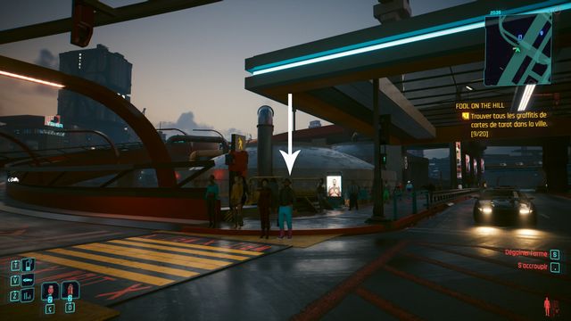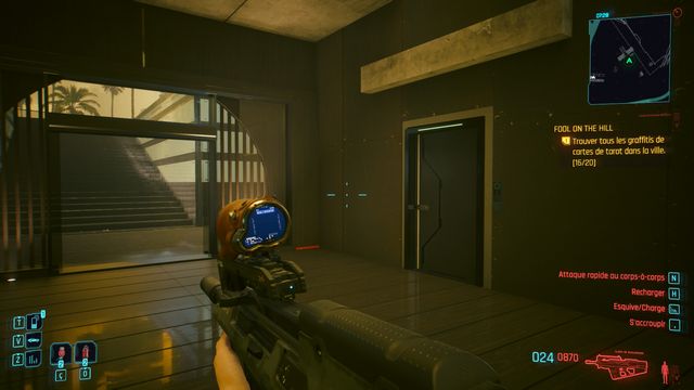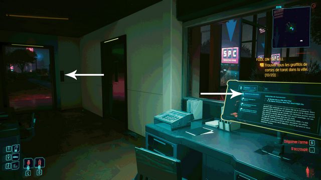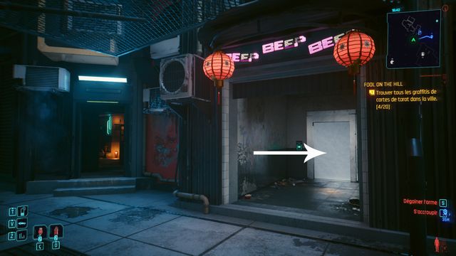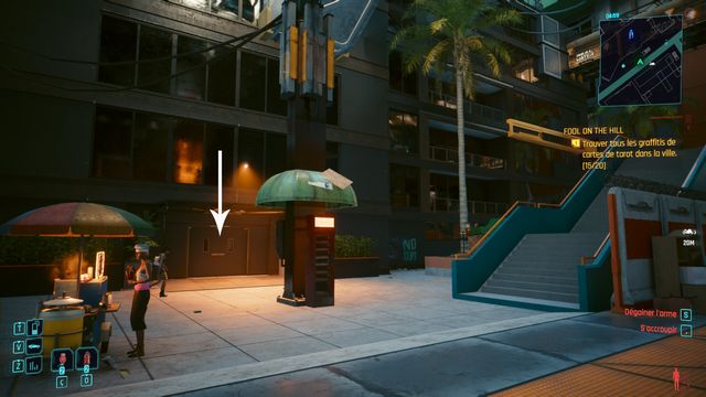Prenez le téléporteur pour "Tour Arasaka" à l'endroit suivant (photo ci-dessous à gauche). Entrez dans le bâtiment moderne (photo ci-dessous à droite).