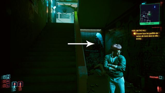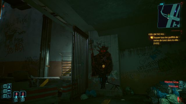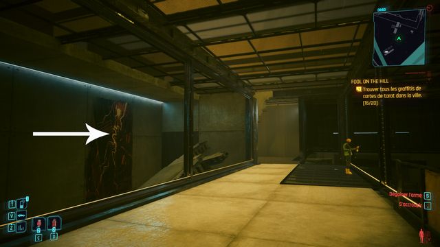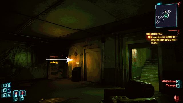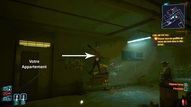 Cliquez sur l'ordinateur sur le mur d'en face (la tache bleue sur le mur) (photo ci-dessous à gauche) pour faire apparaître la carte de tarot (photo ci-dessous à droite).