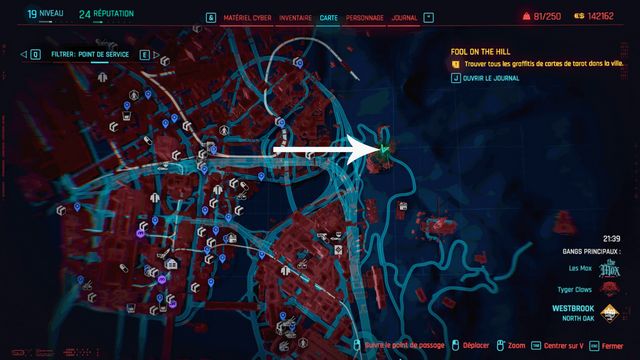 Parlez à Misty. Il vous faut trouver 20 cartes de tarot dans la ville. Allez parler à Viktor, son bureau est juste à côté (Charcudoc).
