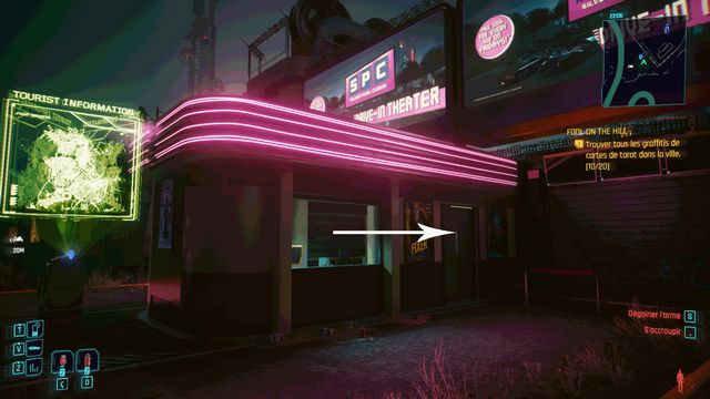 Prenez le téléporteur pour "Drive-In" A l'endroit suivant (photo ci-dessous à gauche). Entrez dans la cabine du Drive (photo ci-dessous à droite).
