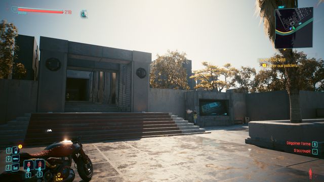 Prenez le téléporteur pour "Domaine Arasaka" A l'endroit suivant (photo ci-dessous à gauche). Vous arrivez face à une entrée (photo ci-dessous à droite).
