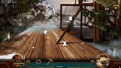 Utilisez le roulement à billes sur les rouages (photo ci-dessous à gauche). Revenez au campement des mineurs et cliquez sur la boite à outils (photo ci-dessous à droite).