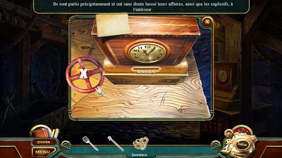 à gauche). Examinez le toit de la maisonnette (il y a un trou dessus) puis cliquez sur les caisses (photo ci-dessous à droite).
