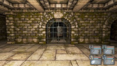 celle à droite puis revenez sur la plaque devant la porte. Toutes les trappes sont fermées. Récupérez la clé en argent dans la niche et utilisez cette clé sur la serrure de la porte pour l'ouvrir. Cliquez sur la