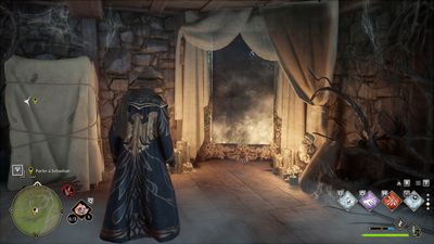 Placez-vous à côté du banc et examinez la vue (photo ci-dessous à gauche). Allez parler à Sebastian après avoir tout examiné. Utilisez "Repulso" sur le mur (photo ci-dessous à droite) puis entrez dans la pièce