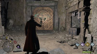 Le passage est désormais accessible (photo ci-dessous à gauche). Pour le gros coffre derrière la grille, utilisez "Wingardium Leviosa" et faites-le passer au-dessus de la grille. Retraversez le portail et
