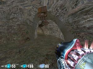 Allez rejoindre la porte en face de vous. Vous arrivez dans la salle suivante (photo ci-dessus à droite). Cliquez sur les ordinateurs pour voir apparaitre un Prazar. Ressortez de la pièce puis revenez tout au début du niveau, là où vous avez commencé le jeu. Vous repassez le tunnel avec les câbles au plafond puis vous tournez tout de suite sur votre gauche, vous arriverez à un téléporteur (photo ci-dessous à gauche).
