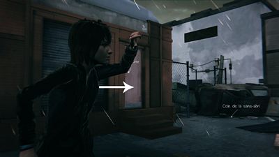 Allez aider le camioneur, il est à gauche de votre position lorsque vous arrivez en voiture (photo ci-dessus à gauche). Entrez dans la boutique suivante en passant par la brèche dans le mur (photo ci-dessous à
