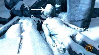 aux soldats gelés puis utilisez le piolet sur le sac pris dans la glace (photo ci-dessous à droite).