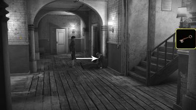 sur le puit. Entrez dans l'appartement et récupérez l'artefact sur l'étagère (photo ci-dessous à gauche). Utilisez l'artefact sur la cheminée pour le détruire. Allez dans la pièce d'à côté pour rejoindre le père