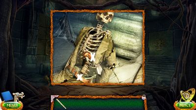cliquez sur le squelette, vous récupérez "le médaillon en fer".