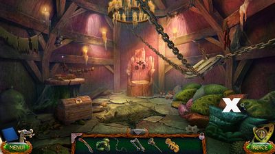 Retournez à "la grange" puis utilisez "la clé" sur le cadenas de la porte en hauteur (photo ci-dessous à gauche). Vous arrivez sur une zone d'objets cachés (photo ci-dessous à droite).