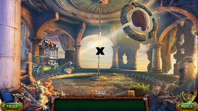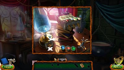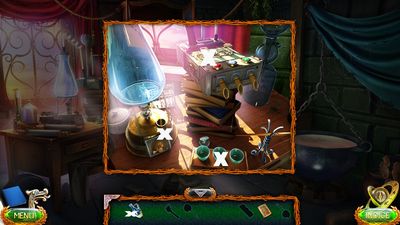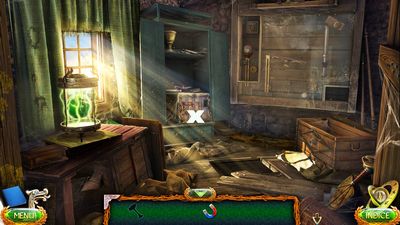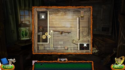 Montez à l'échelle puis utilisez "la poignée" sur la trappe en haut (photo ci-dessous à gauche). Vous débutez un jeu d'objets cachés (photo ci-dessous à droite).