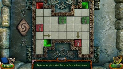 Cliquez sur le puzzle du pilier juste à côté puis placez-y "le carreau" (photo ci-dessous à gauche). Le but est de mettre les clés vertes dans les trous verts et les clés rouges dans