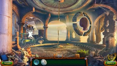 tranchant" dessus. Vous récupérez "le mollusque" et "la coquille". Allez au "Phare" et utilisez "la coquille" sur le cercle suspendu (photo ci-dessous à droite).