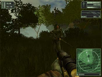 Revenez sur vos pas et quittez le lit de la rivière (Suivez la flèche du radar pour l'orientation). A l'approche d'un grand talus, la mission actuelle se termine.