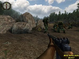 Suivez le groupe, allez tout en haut de la colline (photo ci-dessus à droite), puis lorsque vous voyez le bunker d'assez près, appuyez sur la touche "Utiliser" pour le marquer d'une fumée rouge. Passer par-derrière le bunker en tuant les survivants. Suivez de nouveau votre équipe (photo ci-dessous à gauche).