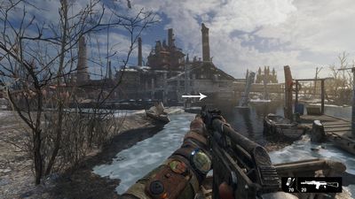 Suivez Melnik lorsqu'il a fini de parler à Katia. Il vous demande de rejoindre le port. Descendez en contre-bas puis utilisez la barque pour traverser (photo ci-dessous à gauche). Rejoignez le bâtiment suivant