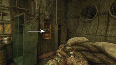 Actionnez le levier à gauche de la porte (photo ci-dessous à gauche). Passez par l'ouverture de la porte et sécurisez la zone. Passez ensuite par la porte rouge (photo ci-dessous à droite) et sécurisez derrière