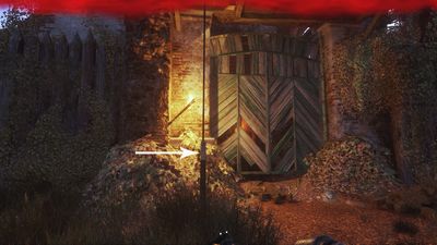 N'hésitez pas à fouiller tous les cadavres que vous verrez sur votre route pour y récupérer des flèches (photo ci-dessous à gauche). Vous êtes intercepté par un groupe de soldat au pont cassé qui vous demandent
