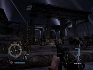 Dirigez-vous dans les ruines (photo ci-dessous à gauche). Allez tout droit en face, vous entrez dans la cache des munitions (photo ci-dessous à droite).