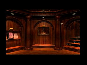 Dirigez-vous vers la bibliothèque. Là où se trouve tous les livres, cliquez sur le cadre situé à gauche, il ouvre un escalier à la place des livres (photo ci-dessus à droite). Lorsque vous abaissez l'escalier, la porte se referme derrière vous. Pour l'ouvrir, cliquez sur l'autre cadre. Vous disposez de 2 livres sur pupitres. Prenez la feuille à droite de chaque livre et cliquez sur son livre respectif. Vous avez un livre bleu et un livre rouge. Regardez ensuite la carte qui se trouve accrochée au mur. Les leviers que vous avez actionnés affichent les structures sur la carte. Cliquez sur la tour, un trait blanc apparait puis dirigez le trait jusqu'à la fusée. Votre trait devient rouge lorsque vous êtes en plein dessus.