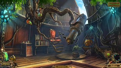 fois sur le cadenas pour le verrouiller. Cliquez sur la tour de l'autre côté du pont pour ouvrir la porte puis une 2ème fois pour entrer dans l'observatoire. Cliquez sur le bonzaï en-dessous du télescope, vous