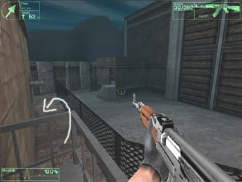 Descendez, traversez le petit tunnel puis remontez à la surface. Allez sur le balcon et sautez par-dessus (photo ci-dessous)