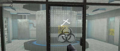 Entrez dans le conduit d'aération en vous baissant, puis utilisez la "vision nocturne" (nightvision) pour vous repérer. Le conduit débouche dans un bureau. Regardez sur le mur gauche, vous y verrez un digicode. Actionnez-le puis allez dans le couloir tuer les ennemis. Revenez sur vos pas jusqu'à l'endroit ci-dessous :