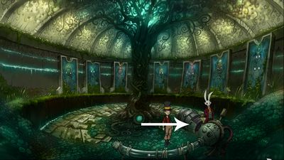 Allez aux frères hérisson puis utilisez la clé fantomatique sur la porte de la tour à gauche (photo ci-dessous à gauche). Cliquez sur la stèle en pierre puis empruntez le passage à droite de la stèle (photo ci-dessous