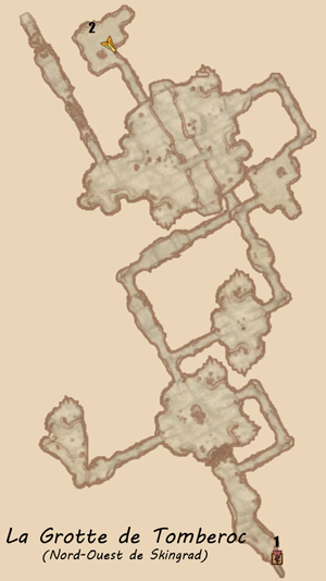 Cette grotte est liée à la quête "Des Affaires de Magicien". Lisez le livre au point 1a de la carte et tuez le nécromancien au point 6.