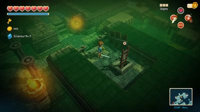 Dans la salle suivante (photo ci-dessous à gauche), descendez puis allez activer le levier (photo ci-dessous à droite).