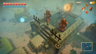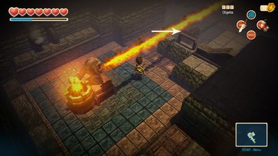 Remontez, allez aux trois statues poussez celle de gauche vers la droite ou taper directement la statue, vous récupérerez un crâne à l'intérieur (photo ci-dessous à gauche). Posez une bombe à l'endroit suivant