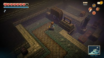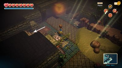 éviter ses coups. A l'issue du combat, les piliers s'abaissent dans la salle (photo ci-dessous à gauche). Vous arrivez à un coffre et vous gagnez "un quart de coeur". Le 3ème sur cette île.