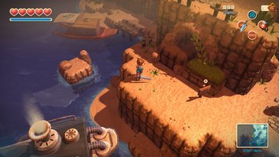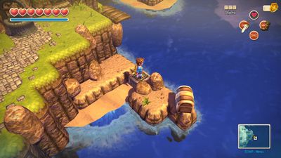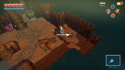 Allez au bord de la plage (non loin de votre bateau) puis décochez une flèche sur la cible (photo ci-dessous à gauche). Un coffre apparaît (photo ci-dessous à droite).