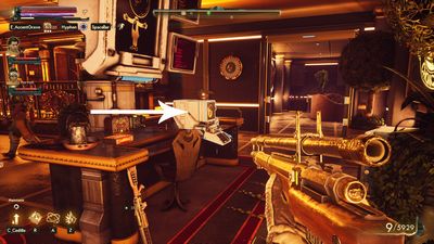 Cliquez sur le scanner à gauche de la porte et choisissez "montrez l'oeil conservé au scanner". Vous accéder au "Bureau d'Incubation Créative". Utilisez le terminal de l'accueil pour déverrouiller la vitrine et la porte des toilettes (photo