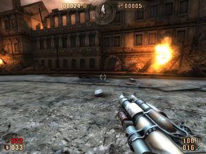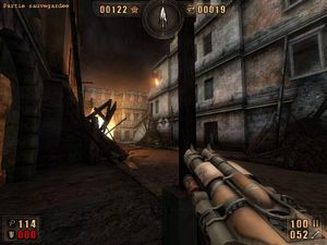 Allez tout au fond puis suivez le couloir jusqu'à ce que vous ressortiez (photo ci-dessus à droite). Faites le ménage, détruisez le tank avec les roquettes puis allez tout droit. Vous rejoignez la rue suivante (photo ci-dessous à gauche).