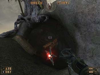 La pièce ci-dessous dispose de beaucoup de tonneau de vin. Tirez sur un des tonneaux pour tous les faire exploser. La porte sera détruite par la même occasion. (Cette pièce se trouve dans le monastère à droite, sur la colline, lorsque vous débutez le jeu).